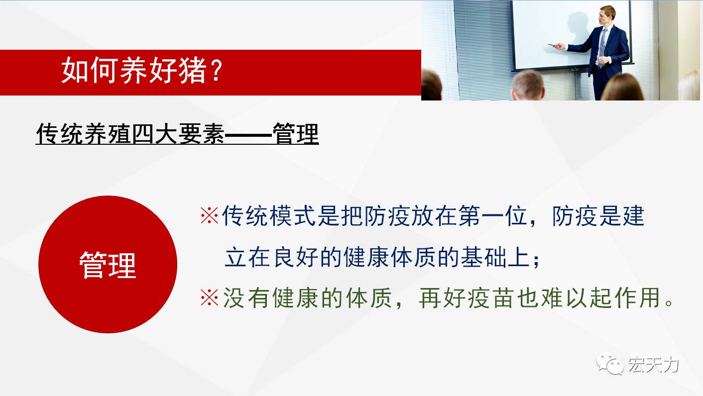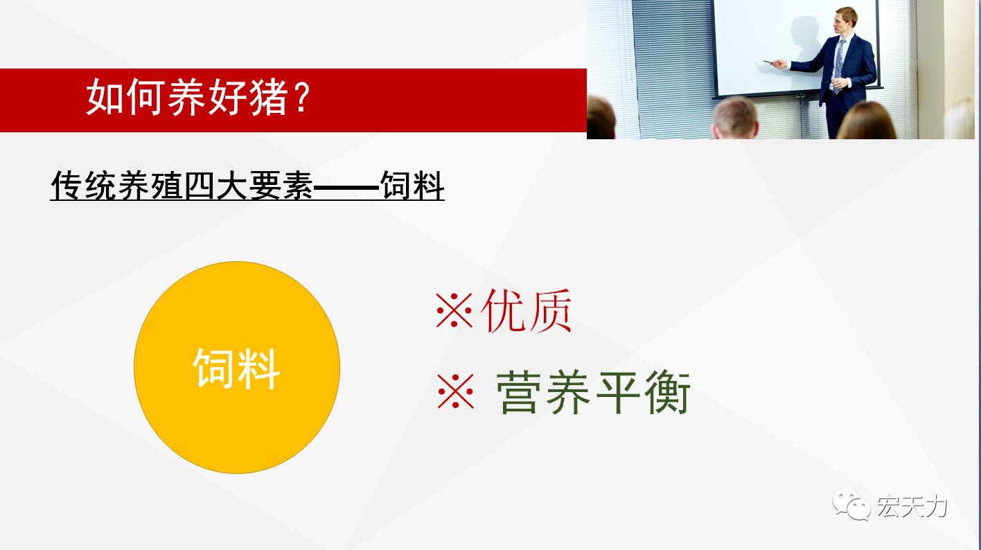 宏天力科技的揣自强老师为大家讲解如何养好猪——育肥多赚100元的秘密