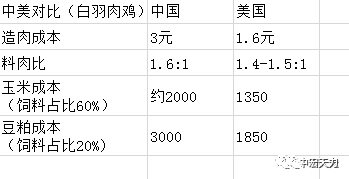 据国外最新研究,测定舍内白羽肉鸡,31天,5斤2两,料肉比1.46:1,这什么概念?美国白羽肉鸡造肉饲料成本仅1元一斤,另加其他成本也超不过1.6元一斤,而我们3块钱一斤。往多了算,一只鸡15块,300亿贸易额,也就是说要进来20亿只鸡,现中国白羽肉鸡存栏量40亿,占了50%。